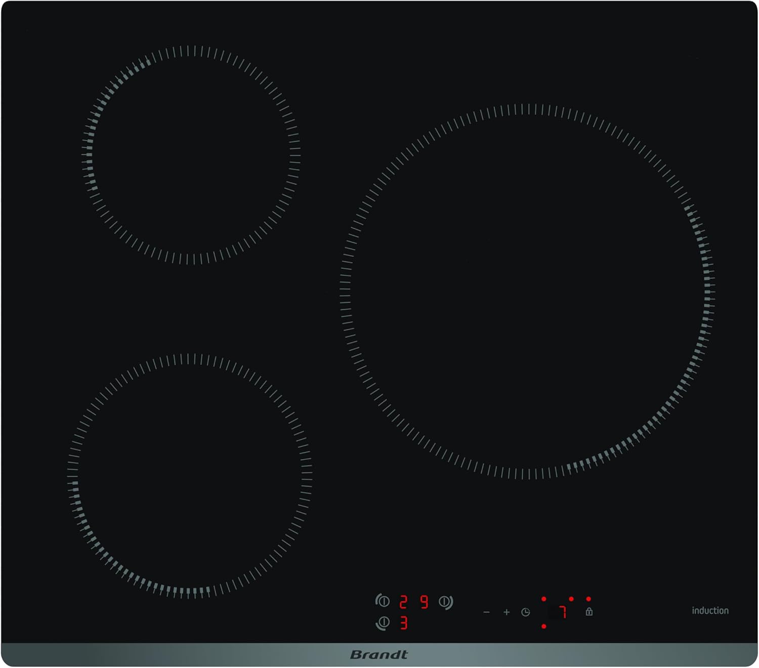 Brandt - BPI6315B - Plaque Induction - Table de Cuisson Encastrable - Noir - 3 Foyers - 7200W - Dimensions Encastrement : 56x49cm - Grand Foyer 28 cm et 10 Positions sécurités - Fabriqué en France