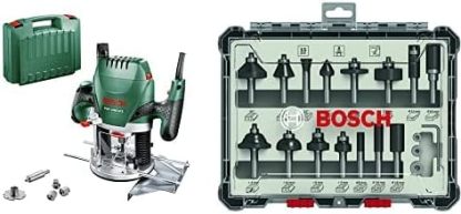 Défonceuse Bosch - POF 1400 ACE Livrée avec set d'accessoires, réglage de la profondeur de fraisage et éclairage et Bosch Professional 2607017472 Bosch Kits de Fraises, 8 mm