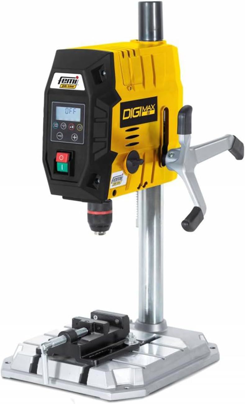 FEMI JOB LINE FM-DIGIMAX13 - Perceuse à Colonne Digitale 13mm - Moteur 720W - Vitesse Électronique 220-2550tr/min - Laser Classe 2 - Table 340x300mm - Étau Inclus