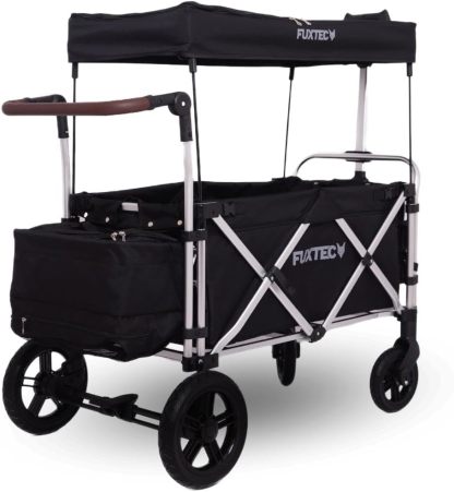Fuxtec Chariot Super Cruiser Noir, L'Original, Chariot de Jardin Pliable pour Enfants, Transport, Plage, Ville, Forêt, à Tirer ou à Pousser, Capacité De Charge 75 kg
