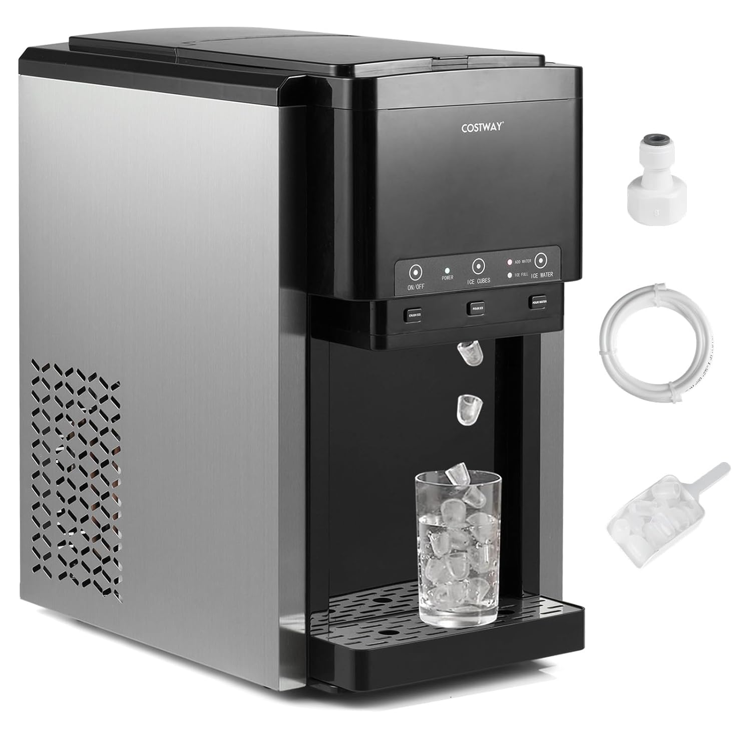 GOPLUS Machine a Glacons à Contrôle Tactile Pratique, 20KG en 24h, 12 Glaçons en 9 Minutes, Machine à Glaçons 3 en 1, Glace Pilée et Eau Glacée, Acier Inoxydable, Ice Maker pour Maison, Cuisine, Bar