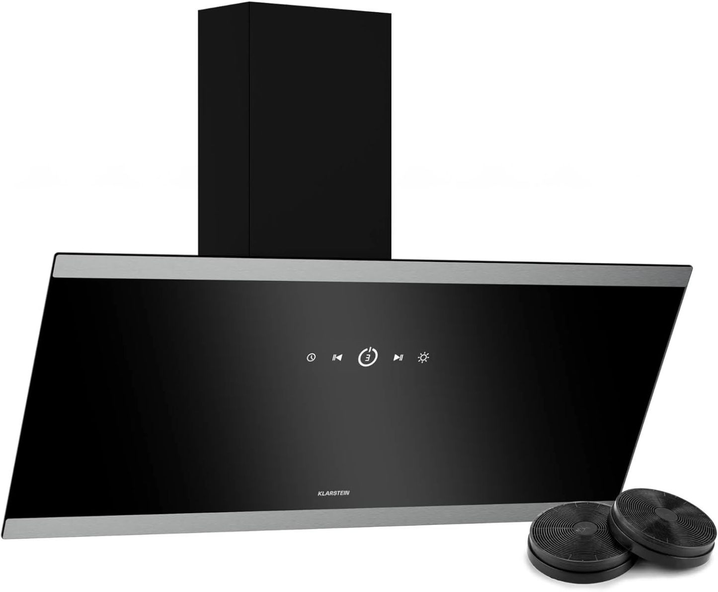 Klarstein FlashLine hotte aspirante - hotte de cuisine 90 cm, écran tactile, 524 m3/h, CEE A++, éclairage LED, silencieuse avec 34,5 dB, noire, conduit et recirculation