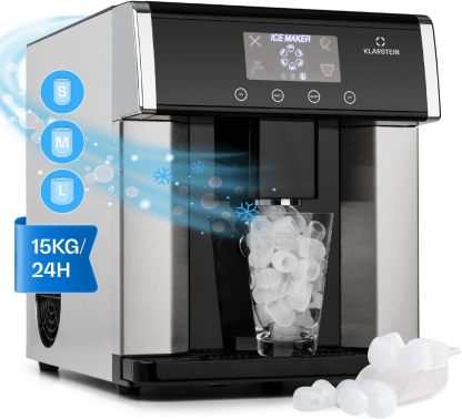Klarstein Machine a Glacons pour la Maison, Capacité de 3L, Fabrique Rapidement Jusqu'à 15kg de Glacons, Machine à Glaçons de 3 Tailles en Forme de Balles, Ice Maker avec Alarme et Facile à Nettoyer