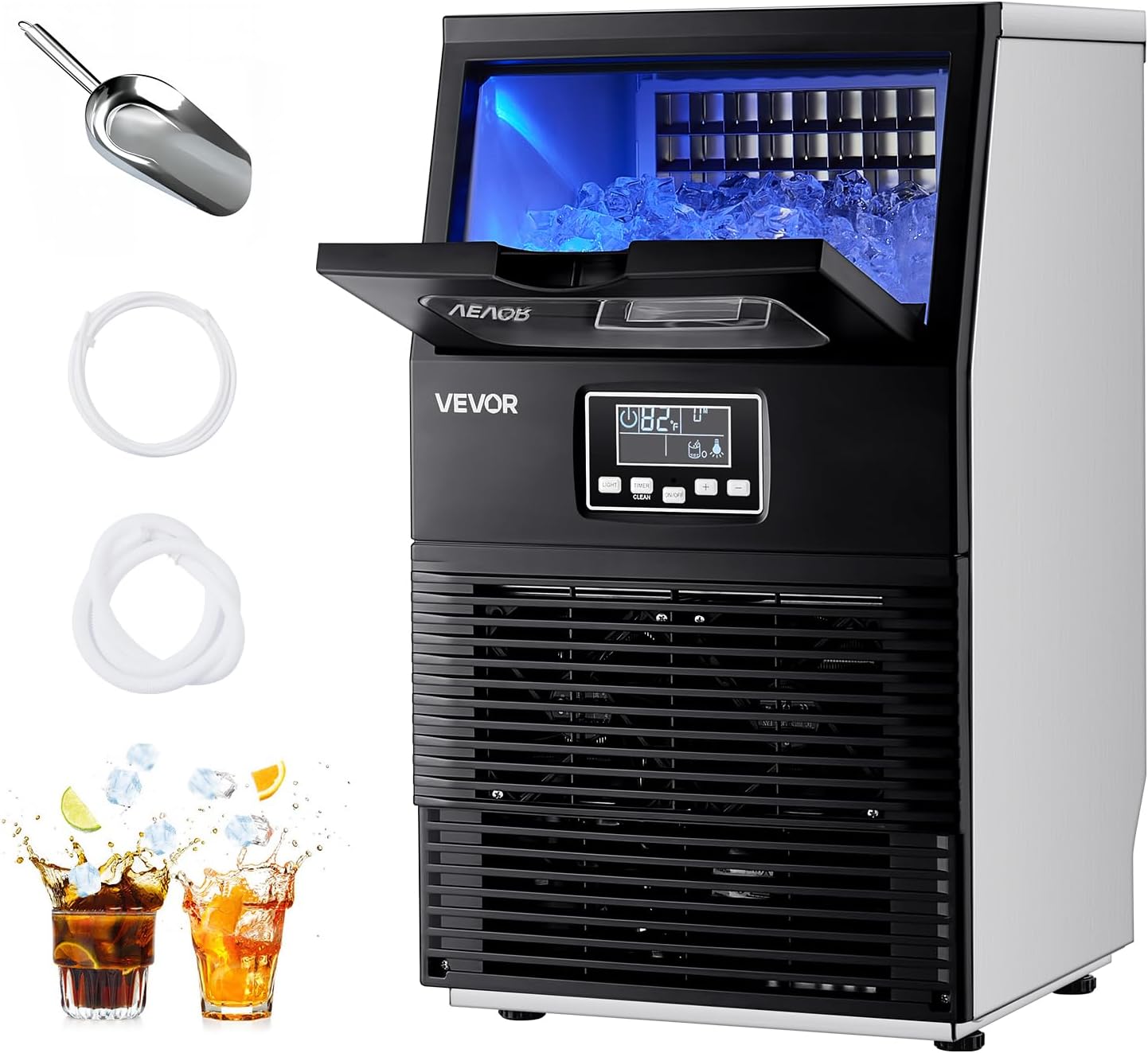 VEVOR Machine à Glaçons Commerciale 36 kg/24 h, Appareil de Préparation de Glaçons avec Capacité de Stockage de 5 kg, 32 Cubes par Cycle, avec Écran LED et Nettoyage Automatique, Restaurant Bar