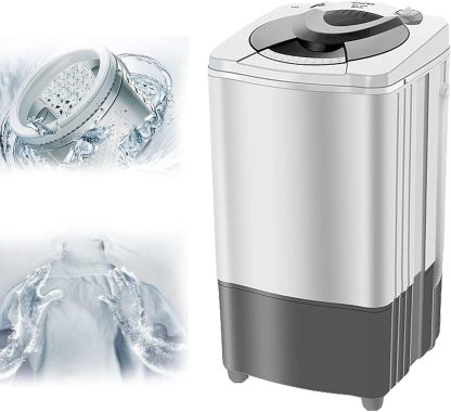 WhAeoy Sécheuse À Essorage, Essoreuse À Économie D'énergie Et D'énergie, Lumière Bleue + 9,5 Kg + Cylindre Intérieur en Acier Inoxydable, Sécheuse À Drainage par Gravité,A